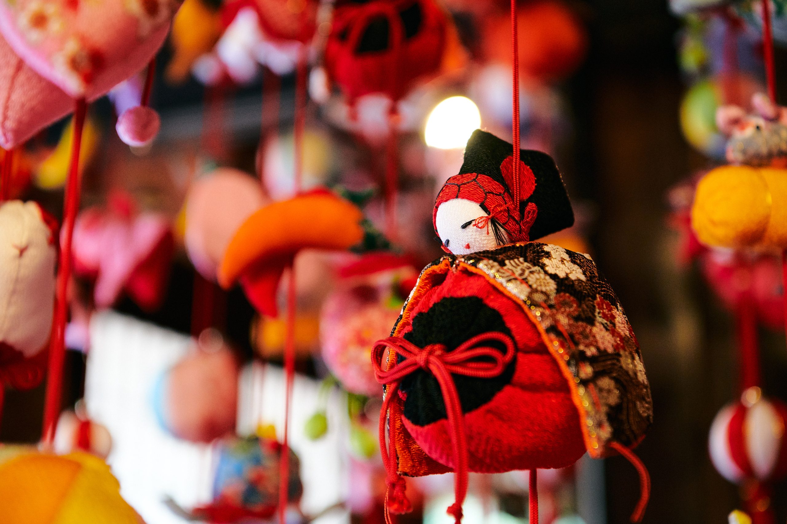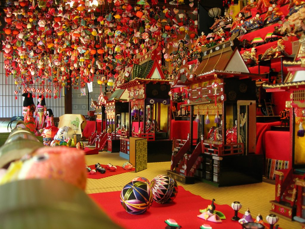 婦人会手づくりの「つるし雛」10,000個以上を展示。高さ2.4mの「大つるし雛」も圧巻です。