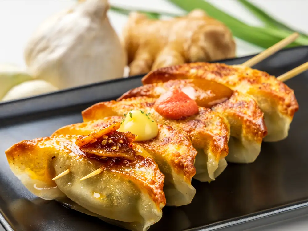 5つの味が楽しめる旨ダレ4種串餃子販売!