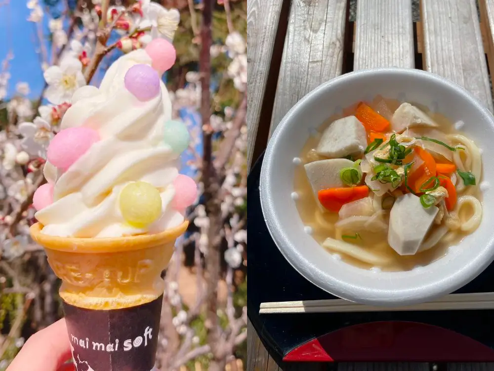 ひなまつりソフトクリーム、地元野菜たっぷりけんちんうどん